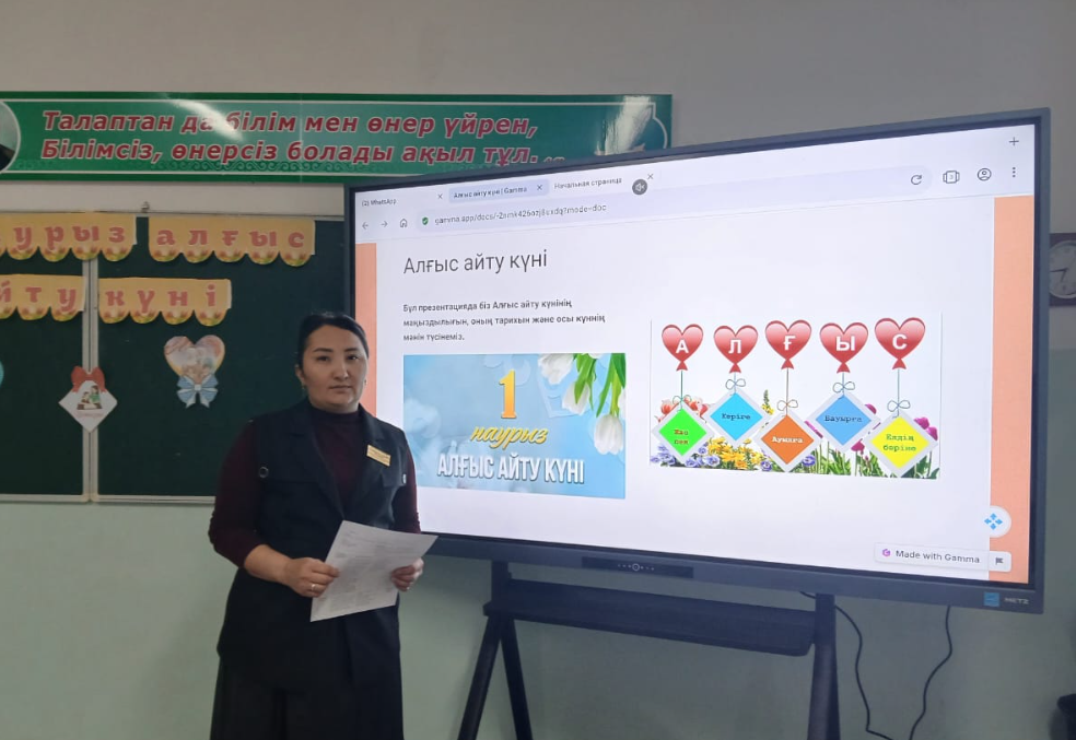 1 - наурыз "Алғыс айту" күніне орай тәрбие сағатын өтті. 7 “А”