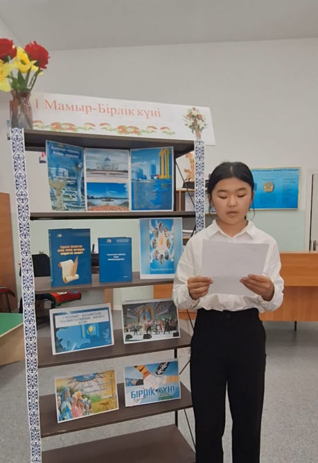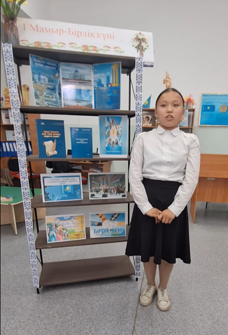 Түркістан облысы білім басқармасының «Арыс қаласының білім бөлімі» мемлекеттік мекемесіне қарасты «Арыс жалпы білім беретін мектеп» коммуналдық мемлекеттік мекемесінің кітапхашылары А. Пердебекова мен Г. Каблашова «1 Мамыр - Бірлік, Ынтымақ күні» мерекесіне орай, мектеп білім алушыларына кітап көрмесін ұйымдастырды. Мақсаты: Оқушыларға Қазақстан Республикасы әлемде ең алғашқы мемлекеттердің бірі болып сырттан келген басқа ұлт өкілдеріне алтын бесік болғандығын ұғындыру; Қазақстандық патриотизмге, елін, жерін сүюге және халқын құрметтеуге тәрбиелеу. Басқа ұлт өкілдерінің мәдениетін, әдет - ғұрпын сыйлауға үйрету; еліміздің тыныштығын сақтауға, бірлік, ынтымағын арттыруға; тыныштықтың қадірін білуге сезіндіру.