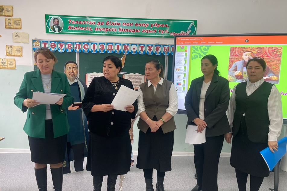 "Арыс қалалық білім бөлімі" мемлекеттік мекемесіне қарасты "Арыс жалпы білім беретін мектеп" коммуналдық мемлекеттік мекемесінде қазақ тілі мен әдебиет пәнінің мұғалімдері Курашова Ботакөз және Шултаева Лаураның ұйымдастыруымен "Абай – дара, Абай – дана әлемде" тақырыбында 7-сыныптар арасында сайыс өткізілді.