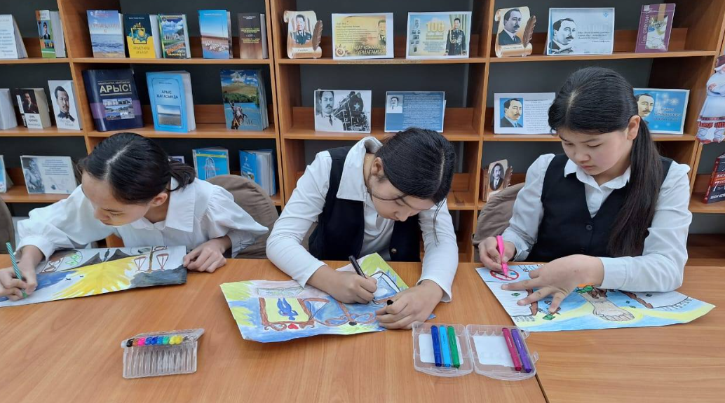 «Оқуға құштар мектеп» жобасы аясында «Арыс жалпы білім беретін мектеп» КММ - нің кітапханашы Г.Каблашова 2025 жылдың 10 ақпанда 3 - 7 сынып оқушылары арасында «Адал болу - парызың» тақырыбында сурет салу байқауын ұйымдастырды.