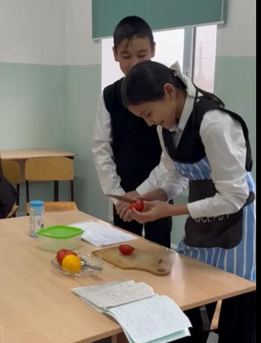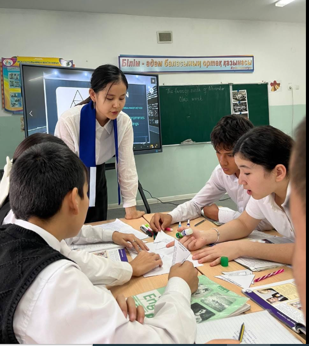"Puzzle" әдісі арқылы және Genially платформасымен өткен тақырыптарға байланысты сұрақтарға жауап бере отырып, жаңа тақырыпты ашты. Оқушылар кітаптағы жаңа сөздерді оқып, мағынасын түсіндірді.