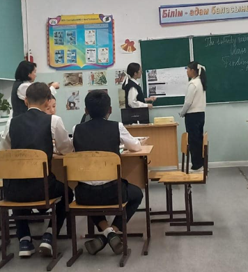 "Арыс қалалық білім бөлімі" мемлекеттік мекемесіне қарасты "Арыс жалпы білім беретін мектеп" коммуналдық мемлекеттік мекемесінде "Язык-символ нации, language-symbol of nation" атты орыс тілі мен ағылшын тілі онкүндігінде Досжанова Айгерім ағылшын тілі пәнінен 7 "А" сыныбына ашық сабақ өткізді.