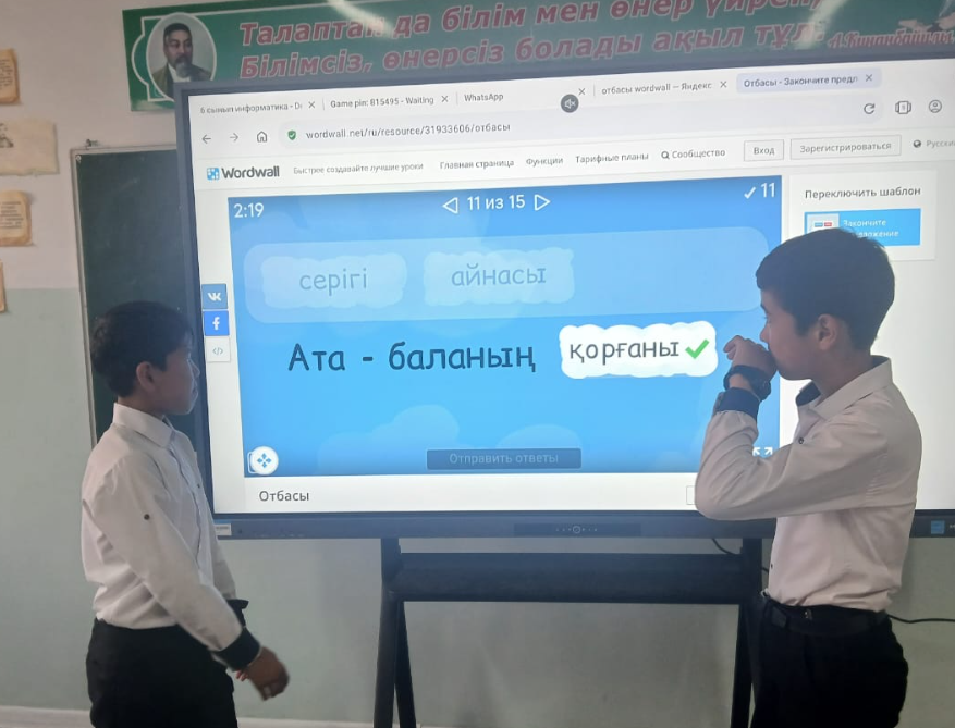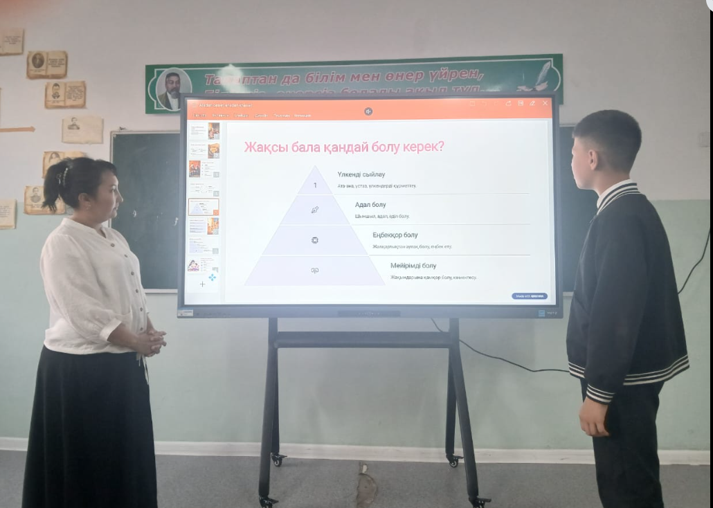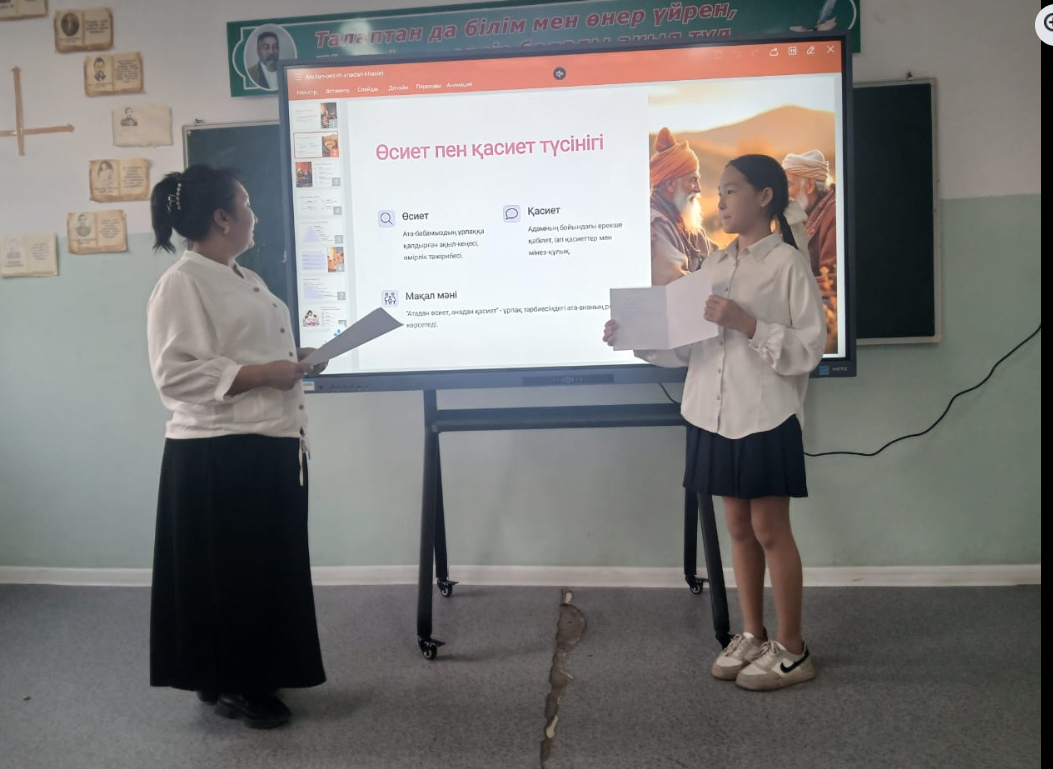 "Арыс жалпы білім беретін мектеп" КММ 7 "В" сынып жетекшісі сынып оқушыларымен "Атадан өсиет анадан қасиет" тақырыбында сынып сағаты өтті. Мақсаты: Оқушыларды негізгі құқықтары мен міндеттерімен таныстыру. "Мейірімділік, "Қайырымдылық" құндылықтар туралы түсініктерін кеңейту. Мағынаны ашуда оқушылар Wordwall плпатформасында тапсырмалар орындады. Оқушыларға "Менің анамның қасиеті" немесе "Әкемнің өсиеті" деген тақырыпта шағын әңгіме жазу тапсырмасы беріледі. «Қазақстан Республикасындағы Бала құқықтары туралы» Қазақстан Республикасының 2002 жылы 8 тамыздағы №345 Заңы №15, 16, 16 - 1, 17, 19, 20, 35, 36, 37, 38, 39 - 1 баптары туралы таныстырылды.