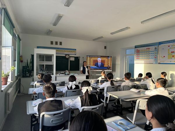 «Арыс жалпы білім беретін мектеп» коммуналдық мемлекеттік мекемесінде «Арыс қаласының Білім бөлімі» мемлекеттік мекемесінің 06.09.2024 ж №1687 шығыс хаты негізінде «Әділетті Қазақстан: заң мен тәртіп, экономикалық өсім, қоғамдық оптимизм» атты Жолдауын жолдауын директордың тәрбие жұмысы жөніндегі орынбасары Ұлданай Мухаева 7 “А” сынып оқушыларымен түсіндірме жұмыстарын жүргізді.