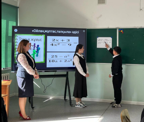 Арыс қаласының Білім бөлімі ММ қарасты "Арыс жалпы білім беретін мектеп " коммуналдық мемлекеттік мекемесінде директордың оқу жұмысы жөніндегі орынбасары К. Турегельдиеваның ұйымдастыруымен "Үйренейік, ізденейік жас маман" тақырыбында Жас мамандар онкүндігі барысында 11. 04. 2025ж күні Рахматла Назерке 7 "А" сыныбында алгебра пәнінен ашық сабақ өтті. Тақырыбы: "Алгебралық бөлшек және оның негізгі қасиеті "Сабақтың мақсаты: 7. 2. 1. 18 алгебралық бөлшектің негізгі қасиетін қолдану: ac/bc=a/b, b≠0, c≠0 ;Үй тапсырмасын "Көршіңмен алмас" әдісі арқылы жүргізді. Миға шабуыл «WORDWALL» платформа арқылы қосымша мәліметтер берді. Топтық жұмыс "Ойлан, жұптас, талқыла" әдісі арқылы 3 топқа тапсырма берді. Бұнда әр топтан 2 оқушы шығып қорғады. "Жеке жұмыс", "Кім жылдам" әдісімен орындады. Сергіту сәті. Ғарышкерлер күніне арналған «WORDWALL» бағдарламасында сұрақтарға жауап бередіЖұптық тапсырма "Жұптас, бөліс" әдісі бойынша жұптасып жұмыс орындалды. Тақтамен жұмыс. Тақтаға есептер шығарды. Сабақты classroomscreen. com платформасында қорытындылап, оқушылардан кері байланыс алды. Үйге тапсырма: Есептер шығару. Сабақ мақсатына жетті.