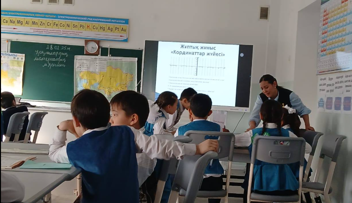 Жұптық жұмыс. "Координаттар жүйесі" әдісімен жұптасып орындады.