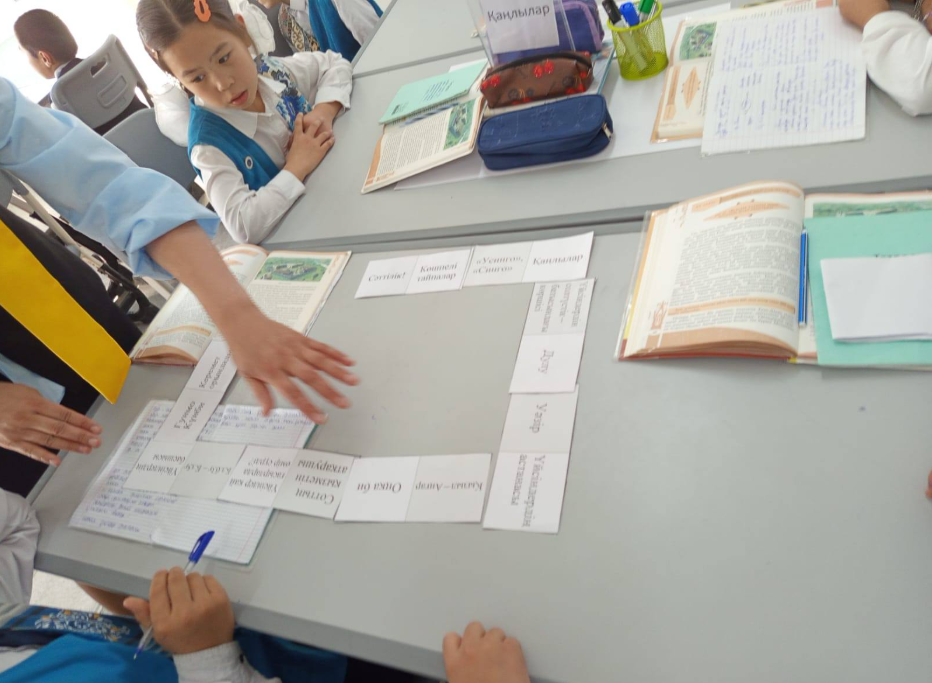Үй тапсырмасын "Домино" әдісі арқылы сұрады. Жаңа сабақты Қаңлылар туралы бейнебаян көрсетіп, қосымша мәліметтер бере білді.