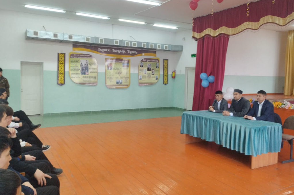 «Арыс жалпы білім беретін мектеп» коммуналдық мемлекеттік мекемесінде 8-11 сынып оқушылары арасында 2025 жылы 19 наурыз күні ораза айында «Қадір түні», «Тауарих намазы», «Жарамазан» айтып балалардың кешкі мезгілде жүруінің алдын -алу бойынша Арыс қаласы ішкі саясат бөлімінің бас маманы Б. Абуев, «Жастар ресурстық орталығы» КММ -нің теолог маманы Н. Рыстай, «Бекзат ата» мешітінің имамы Қ.Садыбаев келіп, түсіндірме жұмысын жүргізді.