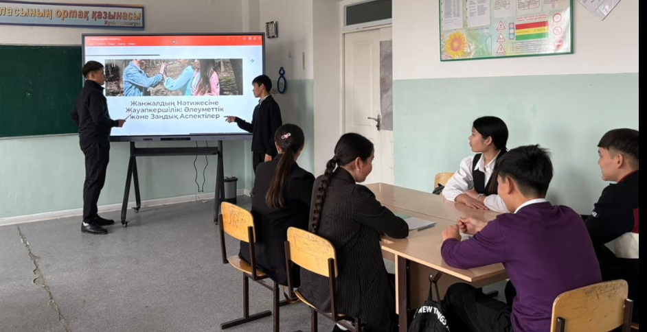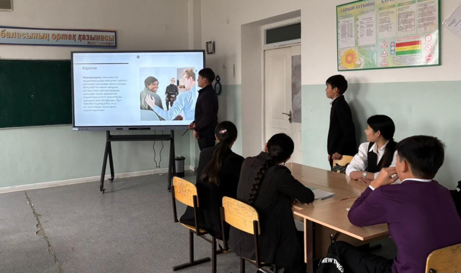 Біртұтас тәрбие бағдарламасын жүзеге асыру бойынша жұмыс жоспарына сәйкес сынып жетекші У. Ахметова 9 «А» сынып оқушыларымен қауіпсіздік сабағы: «Буллингтен қорғану», «Жанжалдың нәтижесі үшін жауапкершілік» тақырыбында тәрбие сағатын өткізді. Мақсаты: оқушыларға буллинг және зорлық-зомбылық туралы мағлұмат беру, адамның жаны мен тәніне үлкен зардап әкелетін соққы екенін түсіндіру және зорлыққа қарсы елімізде заң бар екенін айту; оқушылар арасында қақтығыс орын алған жағдайда жеке жауапкершіліктің маңыздылығын түсіндіру; жанжалды жағдайларды бейбіт жолмен шешуге үйрету.
