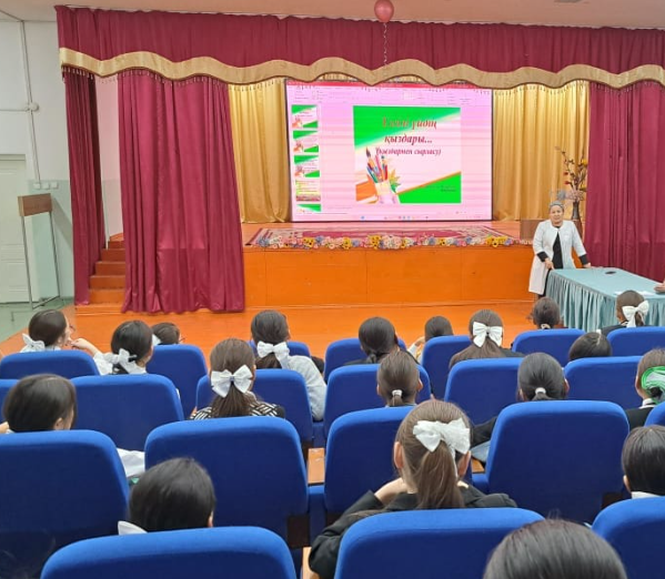 "Арыс жалпы білім беретін мектеп" КММ-де медбике Ғ. Қалымбетова 11.11.2024 жылы психологтармен бірлесіп "Үлгілі үйдің қыздары" тақырыбында қыздар арасында жиналыс өткізді. Мақсаты: қыздарымыздың тәрбиелі, өнегелі, инабатты болып өсуіне, қызға қырық үйден тыю. Жиналысқа мектебіміздің 7-ші сынып пен 11-ші сынып қыздары қатысты.