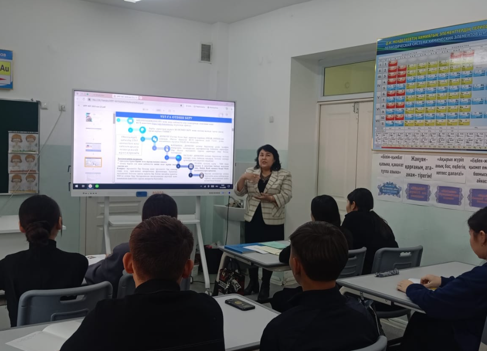 Арыс қаласы Білім бөліміне қарасты «Арыс жалпы білім беретін мектеп» КММ директордың бейін оқыту бойынша орынбасары Ш. Ильясова мен кәсіптік бағдар беруші А. Жұмаділ 10-11 сынып оқушыларына «Ұлттық бірыңғай тестілеу-2025» ережелері туралы түсіндірме жұмыстарын жүргізді.