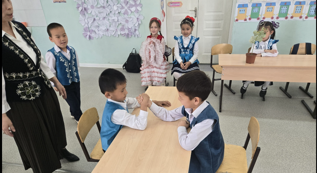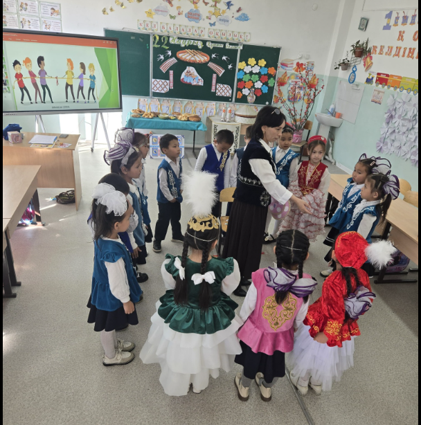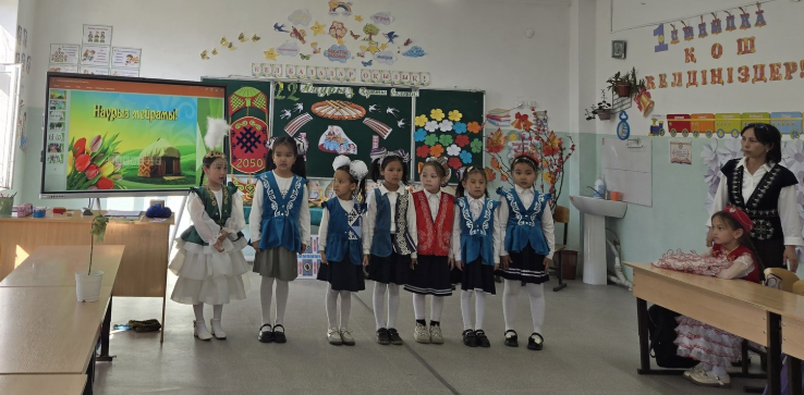 'Арыс жалпы білім беретін мектеп 'КММ-інің жоспарына сәйкес 18 наурыз 'Ұлттық киім' күніне орай 1 'А' сынып жетекшісі Акимова Гүлмира 'Наурыз - жыл басы' тақырыбында ашық тәрбие сағатын өтті. Мақсаты: Оқушыларға Наурыз мейрамы туралы түсінік беру арқылы қазақ халқының салт-дәстүрін дәріптеу және ұлттық құндылықтарды насихаттау. Ұлттық киімін,тамағын,ойындарын насихаттап көрсету.Тәрбие сағатында балалар қазақ халқының ұлттық ойындары 'Асық ату', 'Арқан тартыс', 'Қол күрес'', "Сақина салу' ойындарын ойнады. Топтық жұмыстар 'Кім тапқыр'," Жалғасын тап' ойындары жүргізілді. Сонымен бірге 'Ұлттық киім" күніне орай киініп келген оқушылар марапатталды. Балалар наурыз мерекесіне арналған өлең жолдарын айтты.