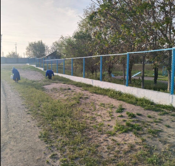 қызметкерлері бірлесіп мектеп ауласымен көше бойын қоқыстардан арам шөптерден тазартты.