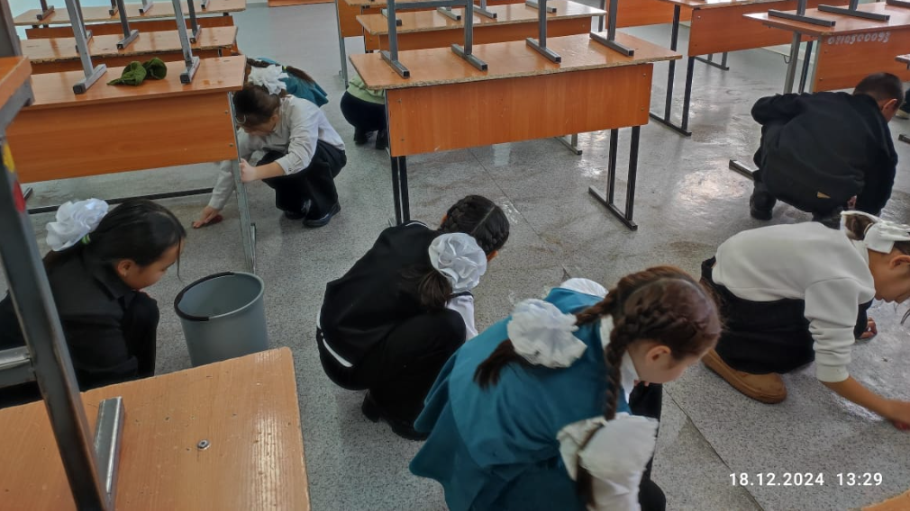 Мақсаты: Сыныптағы жиһаздарды таза және ұқыпты ұстауға, бөлме өсімдіктерін күтіп-баптауға, қоршаған ортаны қорғауға, ұйымшылдыққа және экологиялық мәдениетті қалыптастыруға баулу.