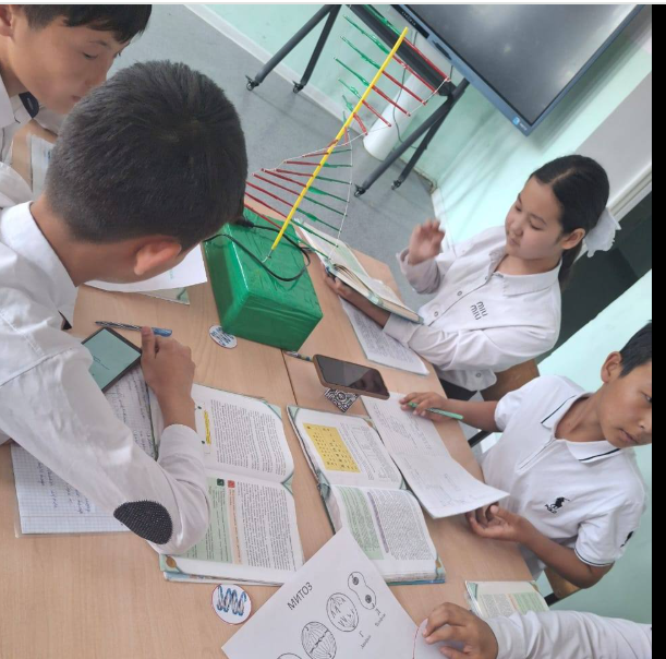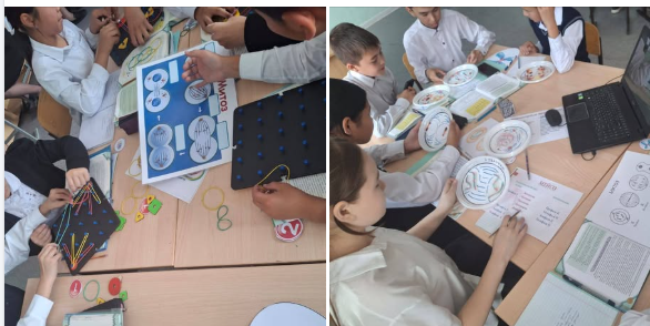 Арыс қаласының Білім бөлімі "ММ қарасты" "Арыс жалпы білім беретін мектеп" коммуналдық мемлекеттік мекемесінде директордың оқу жұмысы жөніндегі орынбасары К. Турегельдиеваның ұйымдастыруымен "Тарих - ғасырлар куәсі, "Жаратылыстану - ғажайыптар әлемі" тақырыбында Тарих, география, биология, химия пәндерінің онкүндігі барысында 16. 04. 2025 күні Кенжеханова Айнакуль Нұржауқызы 7 "Г " сыныбында биология пәнінен әдістемелік сабақ өтті. Тақырыбы: "Әр түрлі ағзалардағы хромосомалар саны" Сабақтың мақсаты: Оқушылар әр түрлі ағзалардағы хромосомалар саны туралы зерттеп, оны өмірде қалай жүріп өтетіні туралы, іс жүзінде қалай жүретінін хромосомалардың қалай орына жылжитын көрсетіп модельдеу жұмыстарын үйрету. Үй тапсырмасын "Ворд волл" әдісі арқылы сұрады. Жаңа сабақты суреттер сөйлейді әдісі арқылы суреттер көрсетіп, қосымша мәліметтер бере білді.