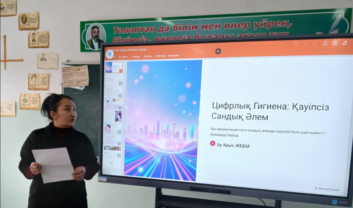 Тәрбие сағаты барысында «Цифрлық гигиена» тақырыбы туралы оқушылар пікір алмасты, Цифрлы платформаларда тапсырмалар орындады.
