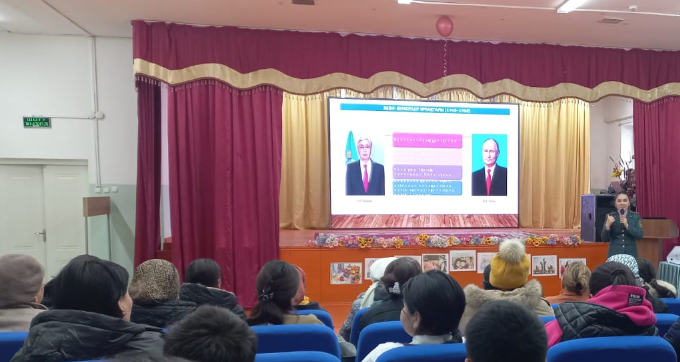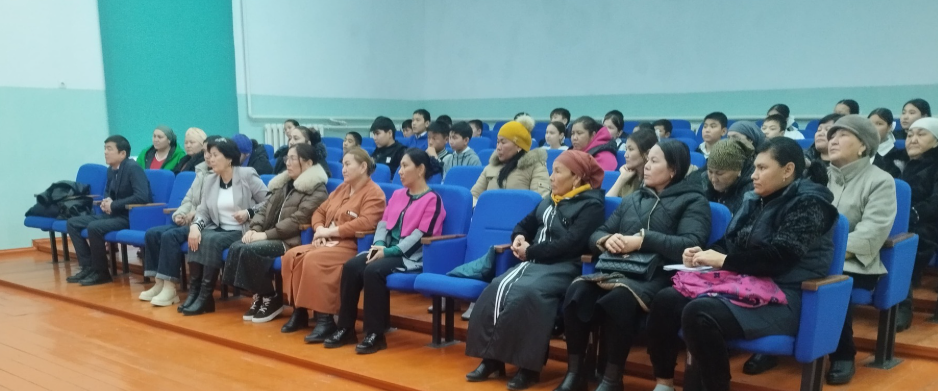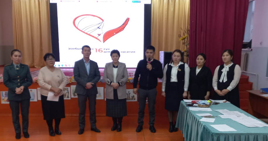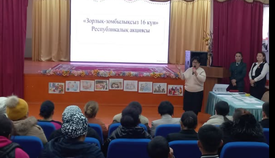 «Зорлық-зомбылыққа қарсы 16 күн» акциясы аясында оқушылар мен ата-аналарға зорлық-зомбылық түрлері, зорлық-зомбылық кезінде қалай көмекке шақыру қажет және басқа да мәселелер қаралды.